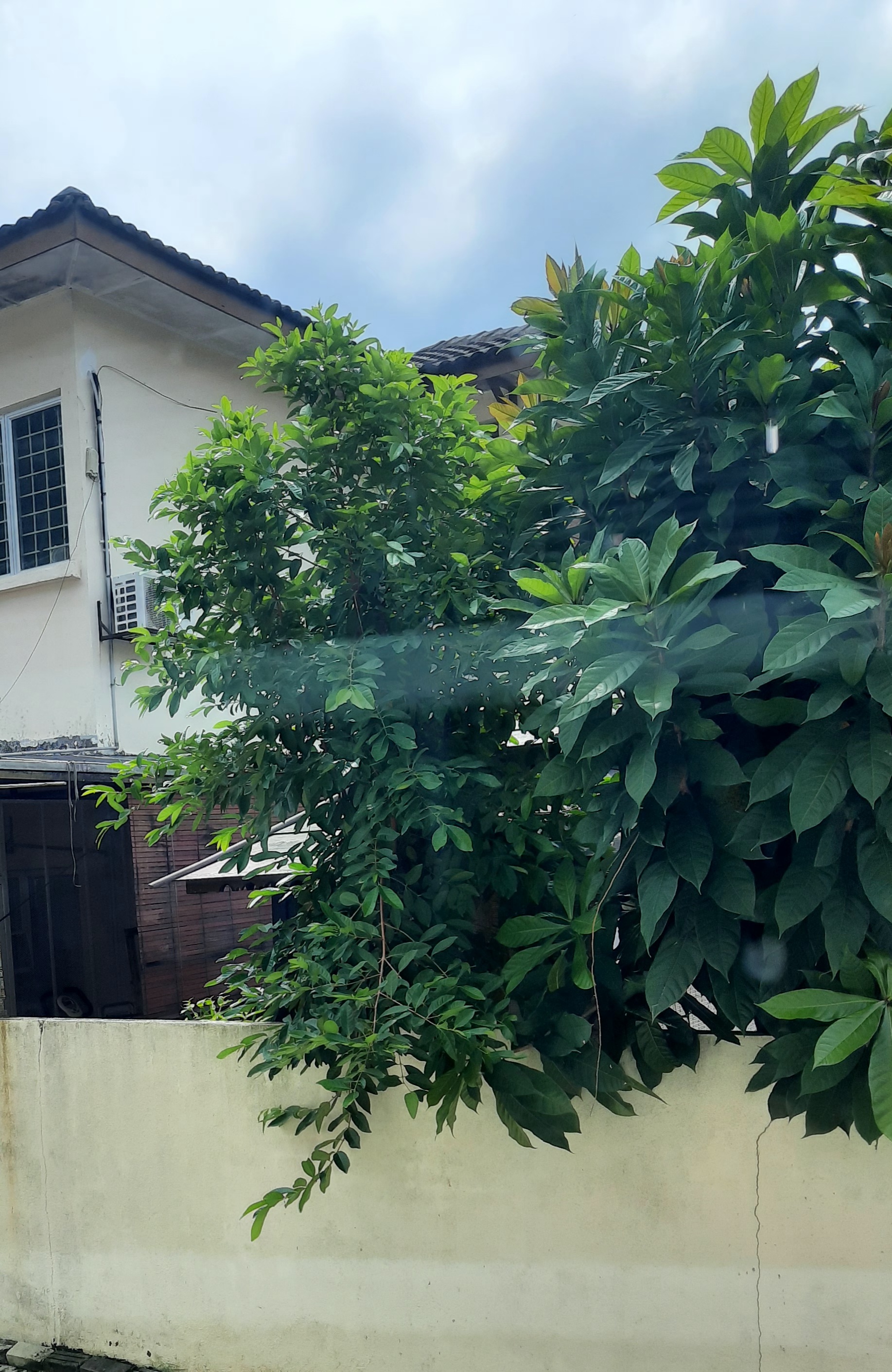 | Pokok samak dan pokok putat yang merimbun hampir mencapai bumbung rumah. |